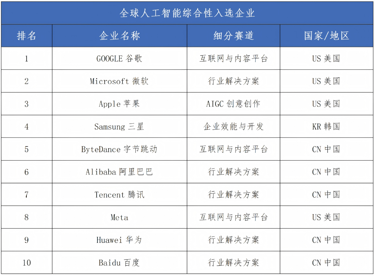 分析性大企业同样有10家入选。